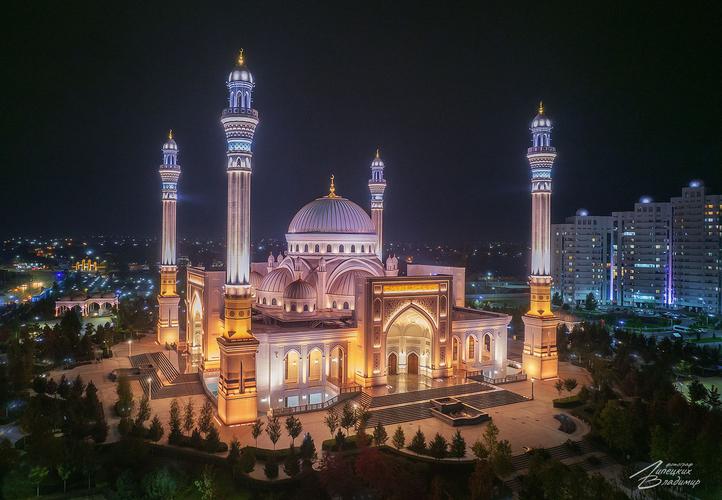 Посещение «Сердца Чечни» - центральной мечети города. Мечеть представляет собой уникальное сооружение. Стены мечети отделаны редчайшим мрамором, который добывают на одном из островов Мраморного моря.